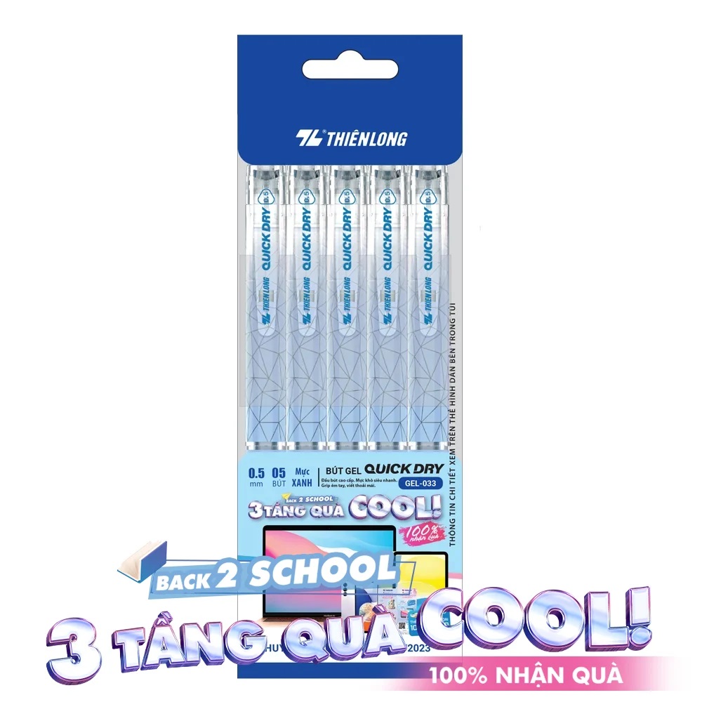 Túi 5 Bút gel Quick Dry Thiên Long GEL-033 – Mực khô siêu nhanh-KM